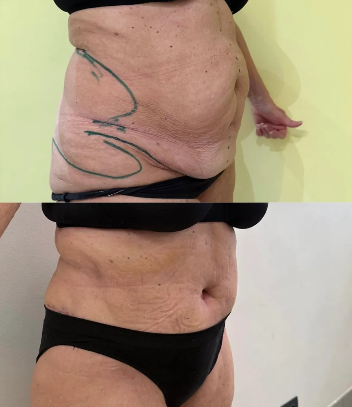 It removes excess skin and fat, tightens the abdominal muscles, and can also correct diastasis or hernias.