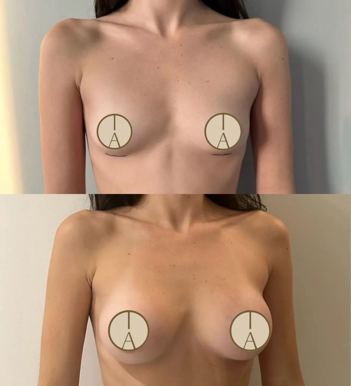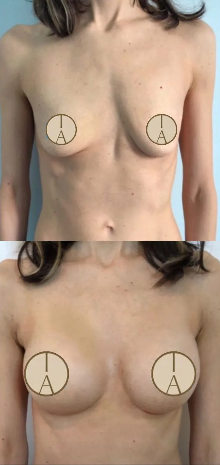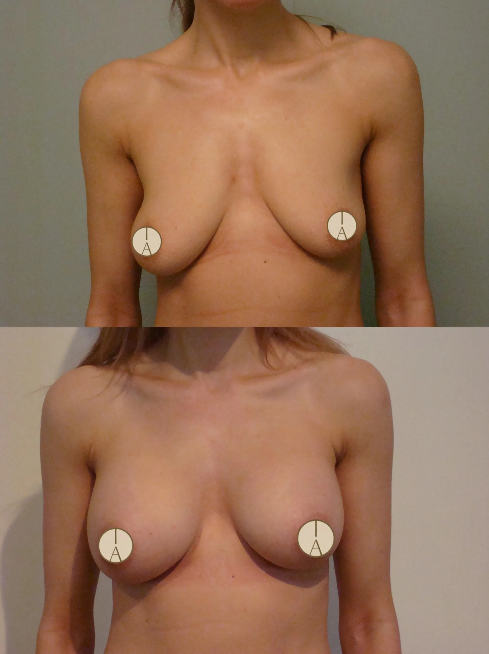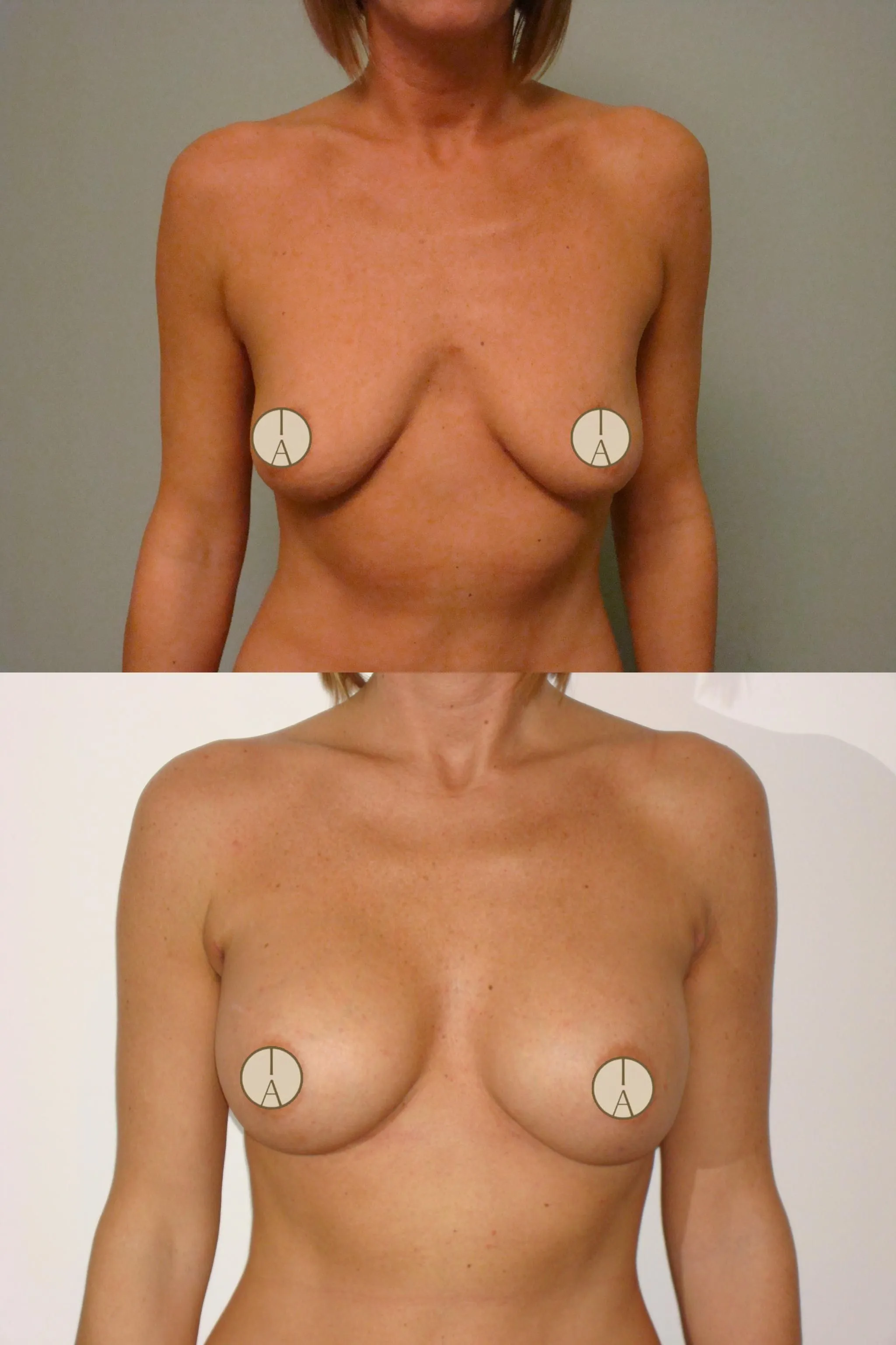 Implants may be inserted via areolar, inframammary, or axillary incisions, and placed above or below the muscle.