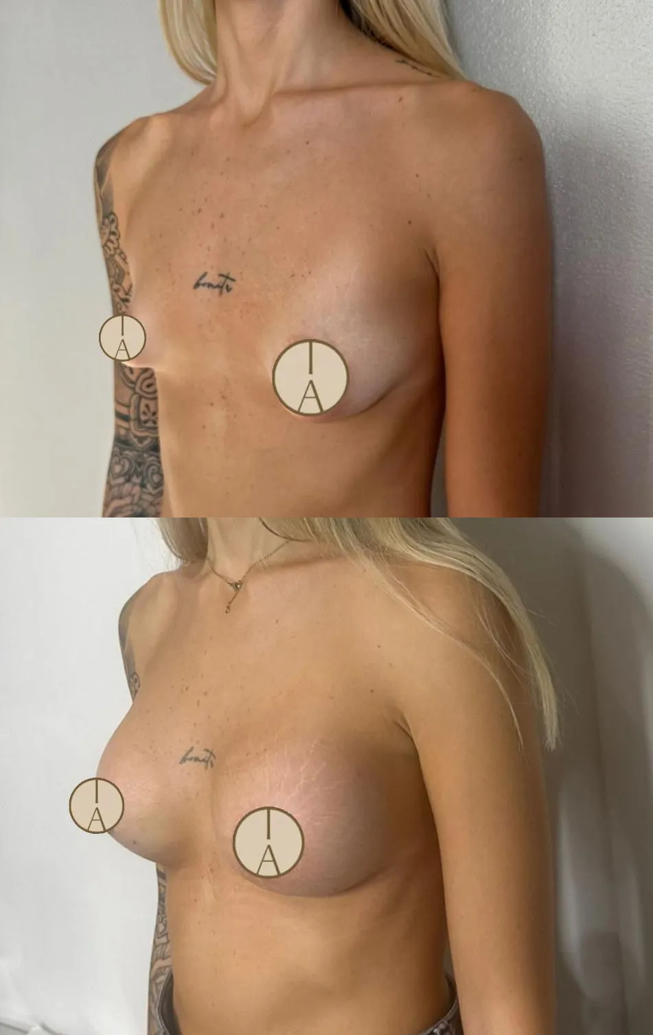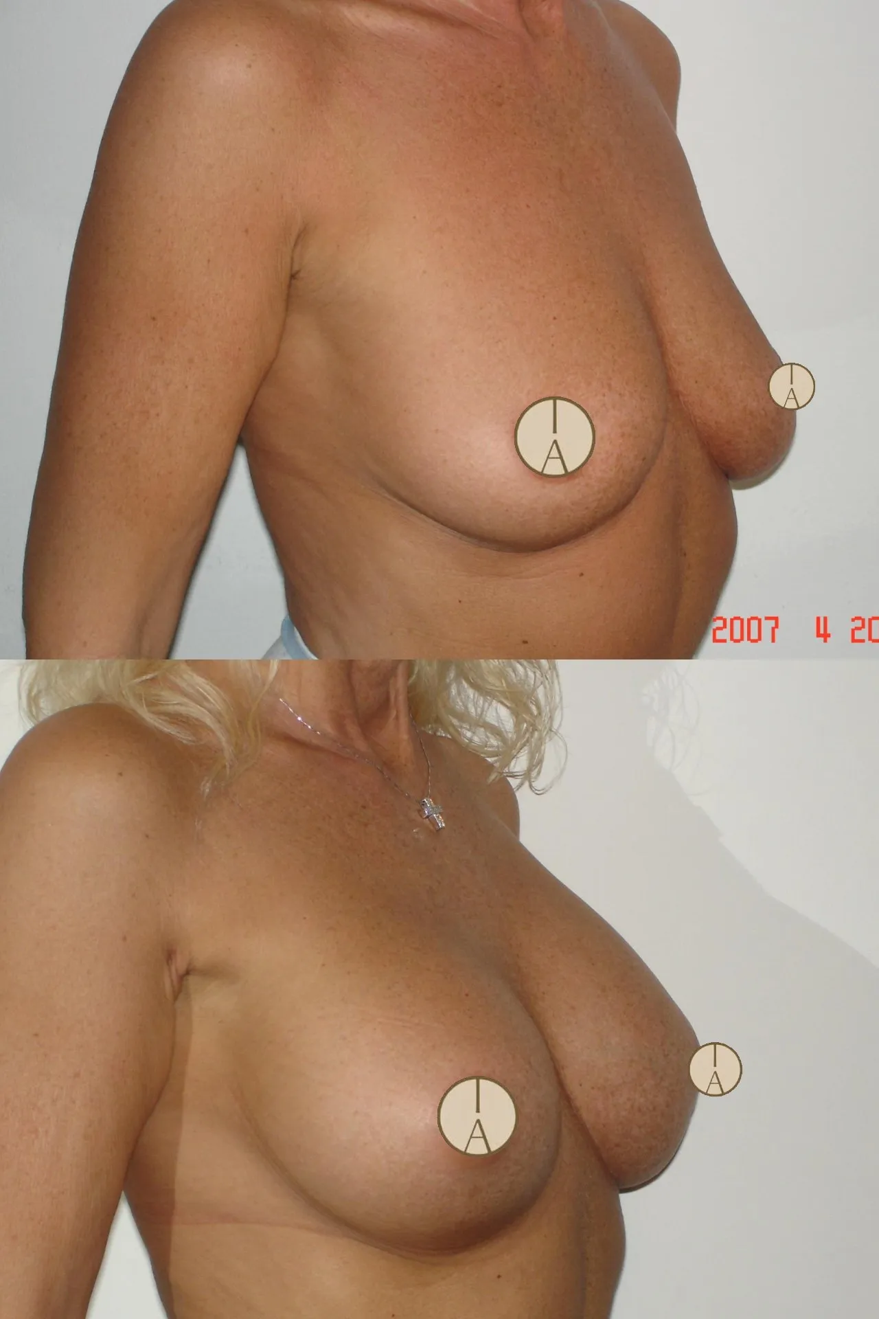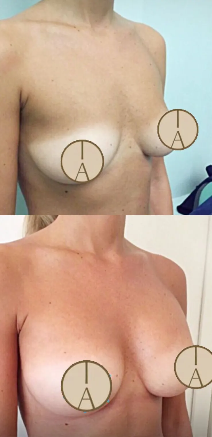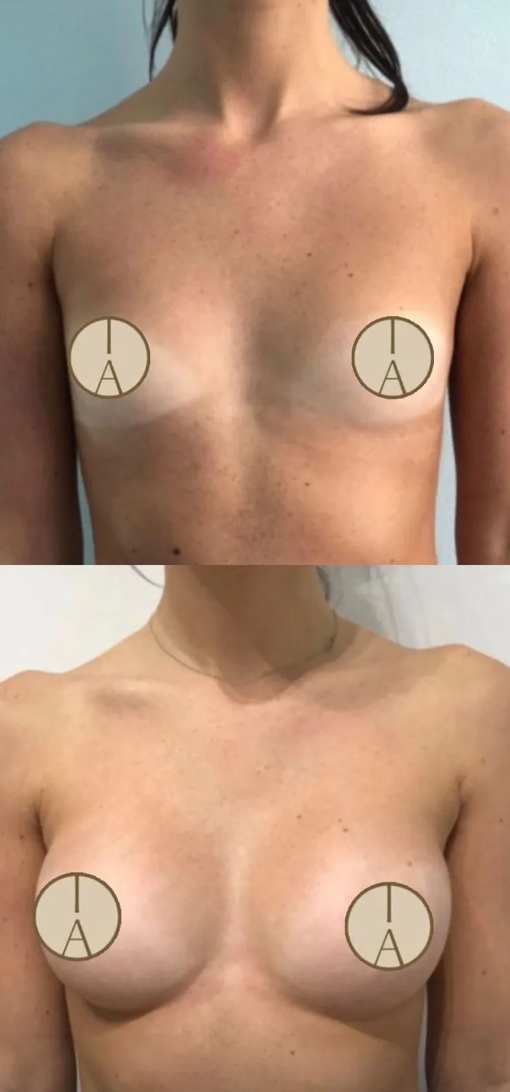 Implants may be inserted via areolar, inframammary, or axillary incisions, and placed above or below the muscle.